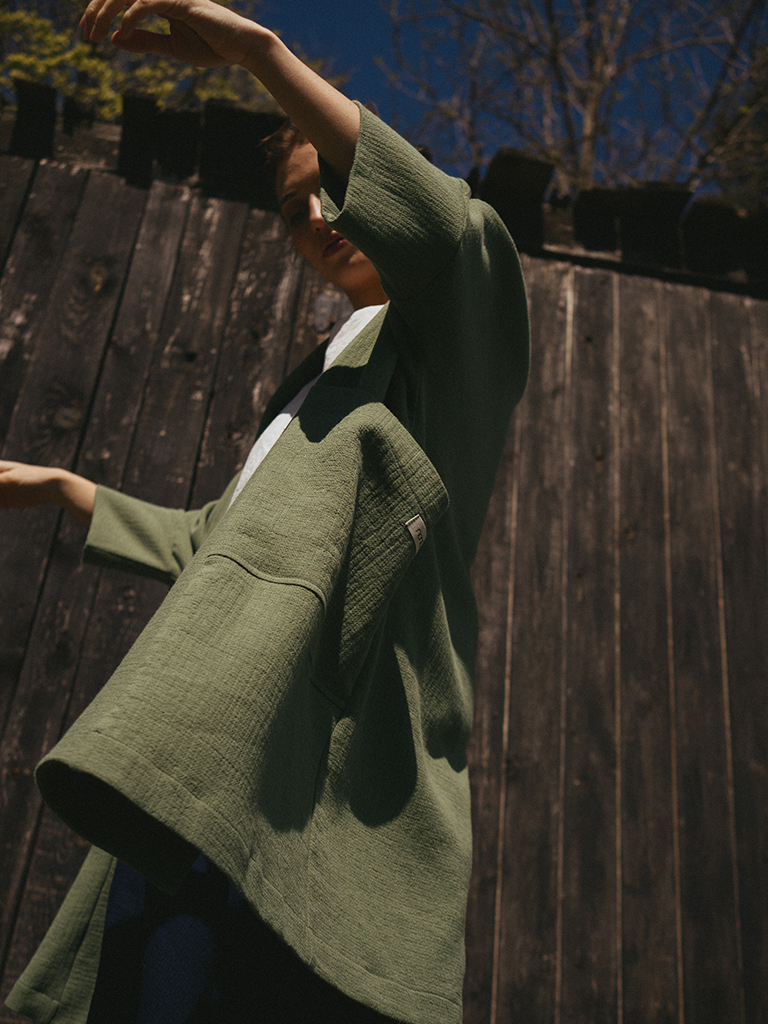 Jaqueta ampla, agradable i comodíssima. Amb mànigues ¾ i grans butxaques al davant. Serà la peça que portaràs més aquesta temporada. Ideal pels matins i vespres més fresquets.